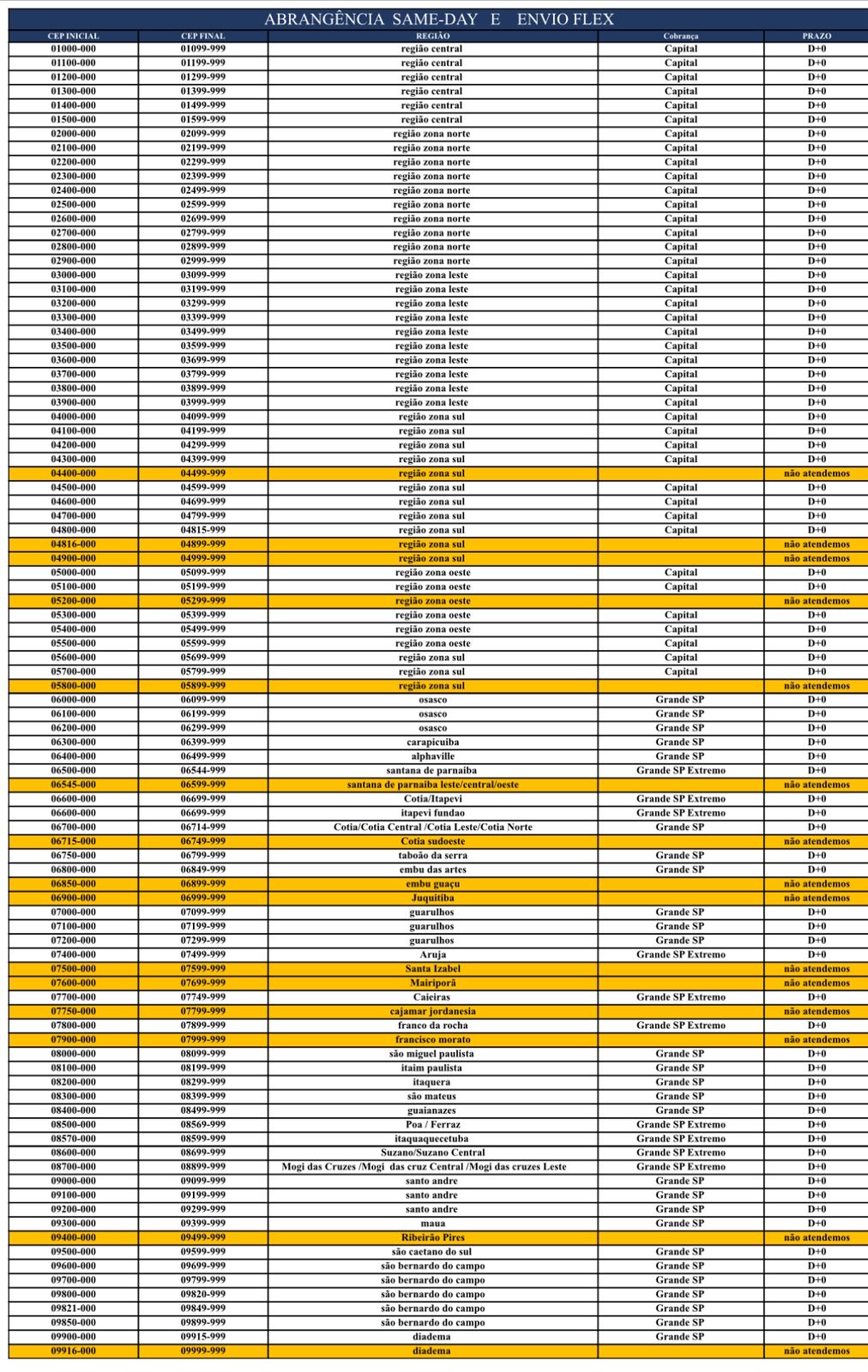 (Após o pedido, verificamos o CEP. Caso esteja fora da rota, entraremos em contato para readequar o envio) VALOR FIXO R$15,99
