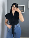Blusa laço gravata em tecido crepe, leve e fresquinho. Possui detalhe de gola com laço, imitando uma gravata, além de forro na parte do busto.